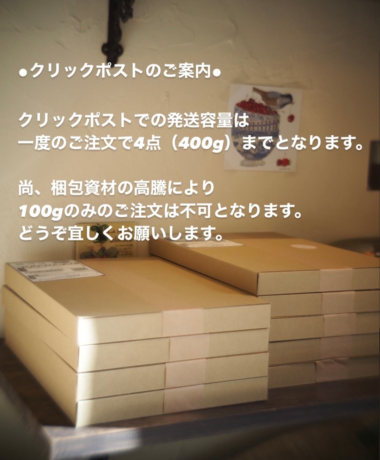 尚、資材高騰のため、100gのみのご注文はご遠慮頂きますようお願い致します。】
